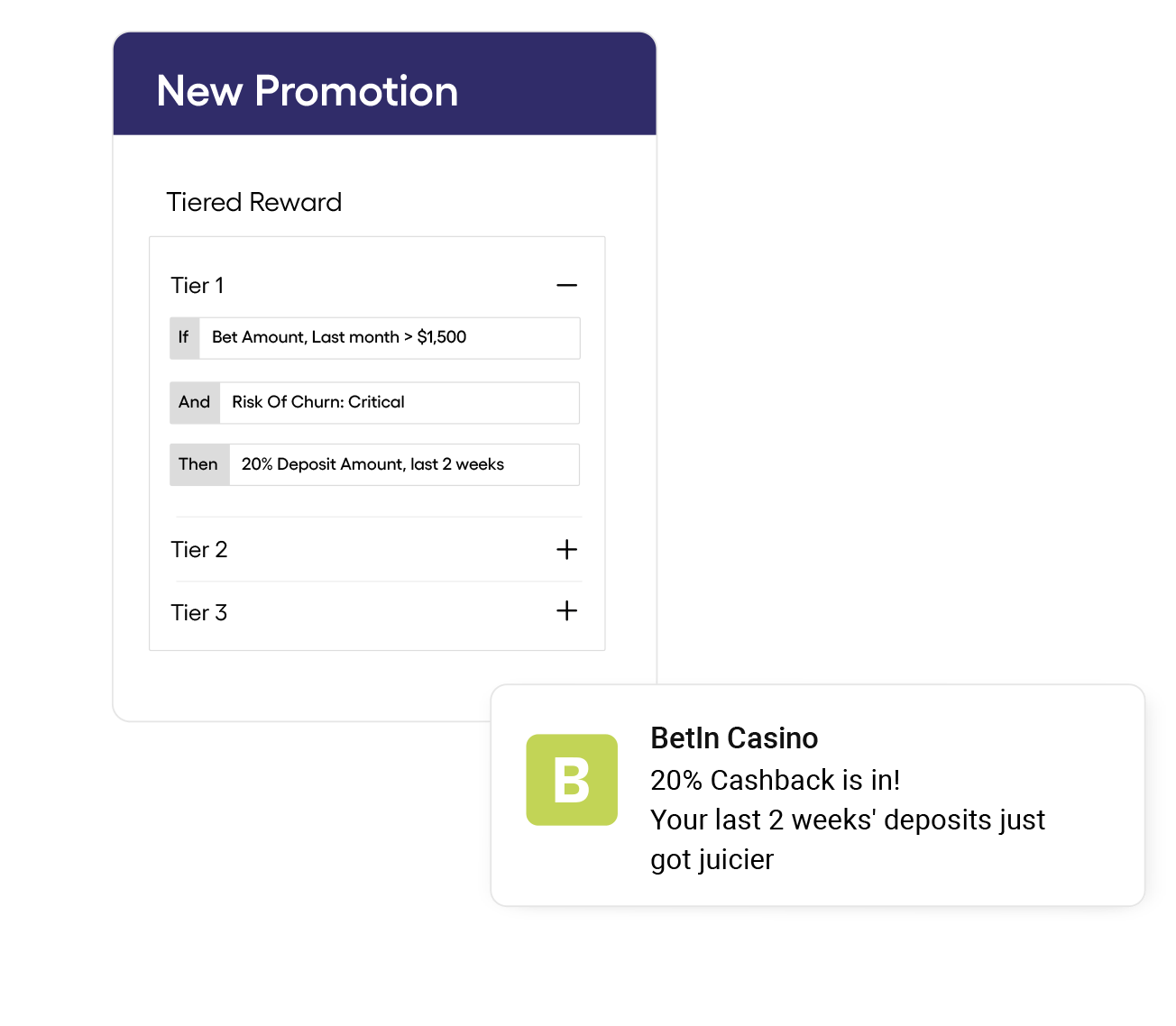 Configure recompensas inteligentes basadas en el comportamiento real, como el tamaño del depósito y la frecuencia de las apuestas, sin necesidad de ayuda de los equipos de datos.
