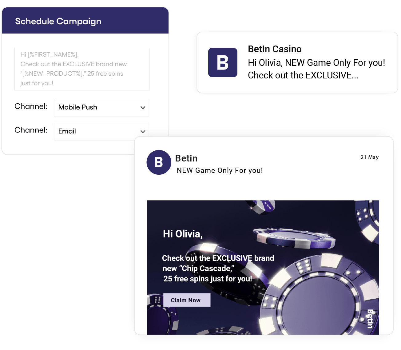 Unify messaging across Optimove Engage’s native channels, including email, mobile, web, ad networks, and more.