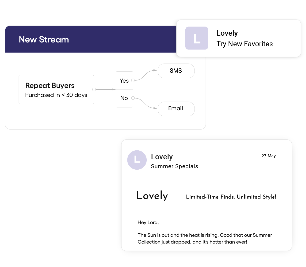 Native support for email, SMS, push notifications, and web personalization, plus easy integrations to additional channels—ensuring consistent cross-channel experiences.
