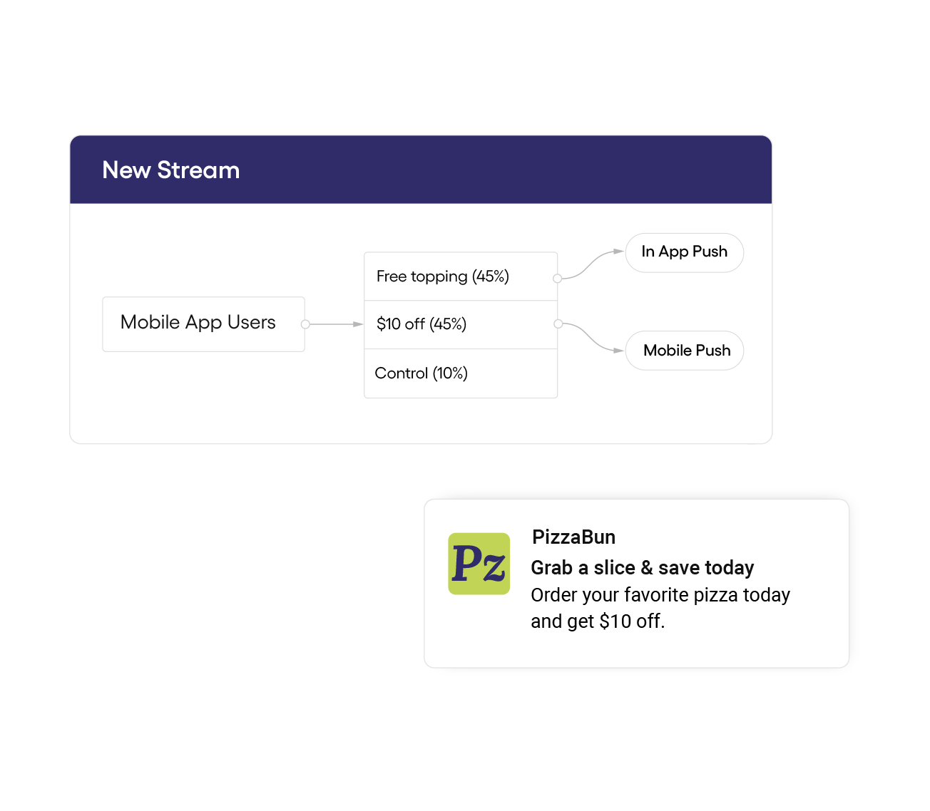 Deliver real-time, personalized mobile experiences across push notifications, in-app messages, and inbox to boost retention, loyalty, and revenue