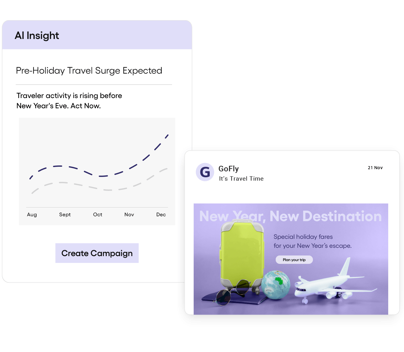 Increase engagement and bookings by triggering personalized experiences, powered by real-time behavior and traveler preferences.